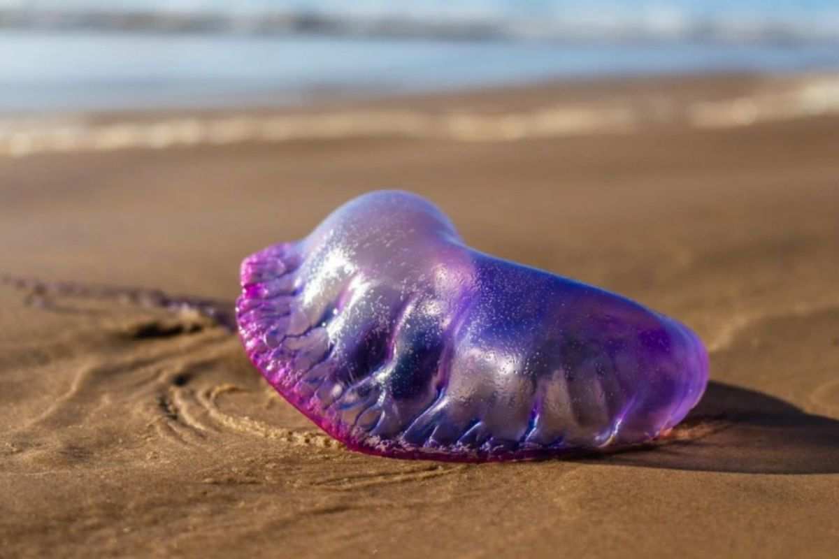 Non si tratta della classica medusa che siamo abituati a schivare durante i bagni estivi. La Caravella portoghese è un sifonoforo, ovvero un’intricata colonia di organismi che cooperano come se fossero un unico individuo.