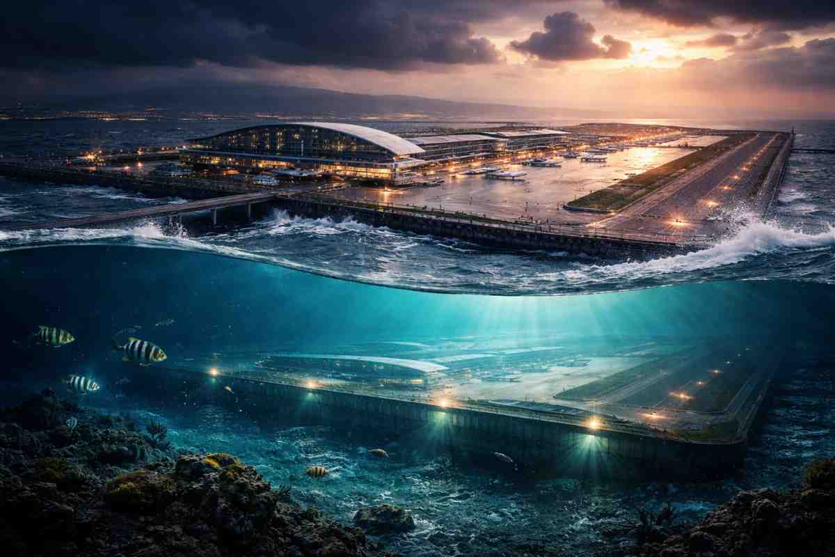 La scelta di costruire in mare aperto non fu una dimostrazione di forza, ma una decisione obbligata. Le alternative sulla terraferma erano limitate dalla densità abitativa e dalle resistenze locali. Creare un’isola artificiale apparve come la soluzione più praticabile, nonostante le evidenti criticità geologiche legate alla presenza di sedimenti argillosi alluvionali.