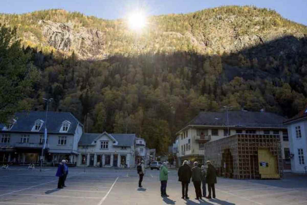 Il funzionamento è tanto semplice quanto efficace: lo specchio intercetta i raggi solari e li riflette direttamente sulla piazza principale del paese, restituendo luce dove naturalmente non arriverebbe.